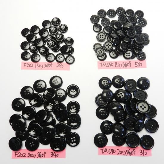黒色系のボタンの穴ハトメ加工したボタン/15mm/4穴/ジャケットやスーツ上着の袖口・カーディガンに最適