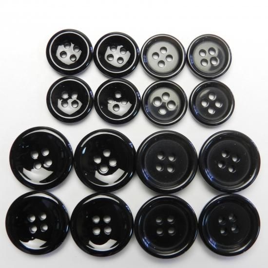 [10個入]黒色ボタン/15mm/4穴/スーツやジャケットの袖口・カーディガンに最適
