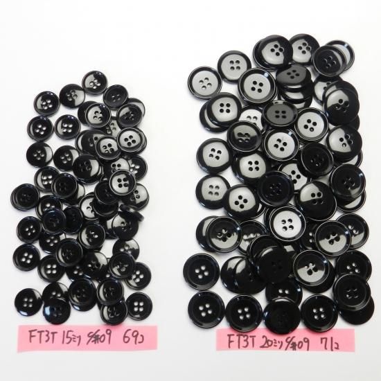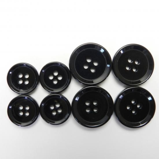 黒色プラスチックボタン/15mm/4穴/ジャケットやスーツ上着の袖口・カーディガンに最適