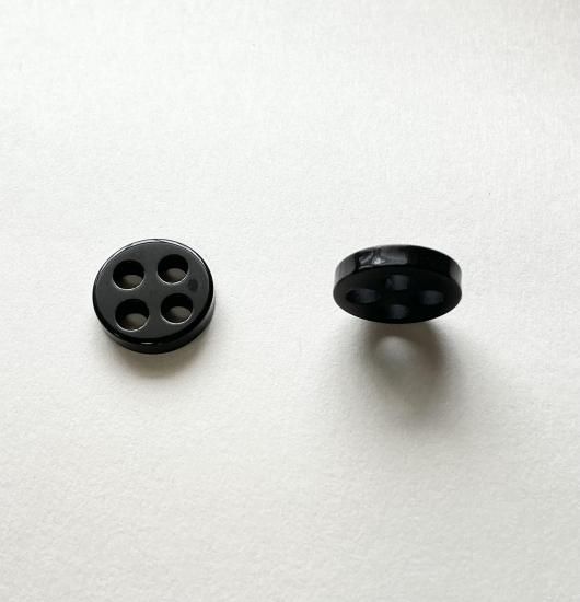 プラスチックの黒色ボタン4穴15mm10個入です。